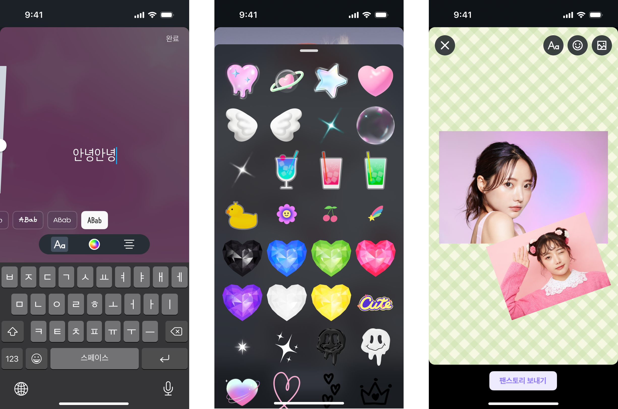 - 스티커/이미지/텍스트를 사용해 꾸미기를 할 수 있어요. .